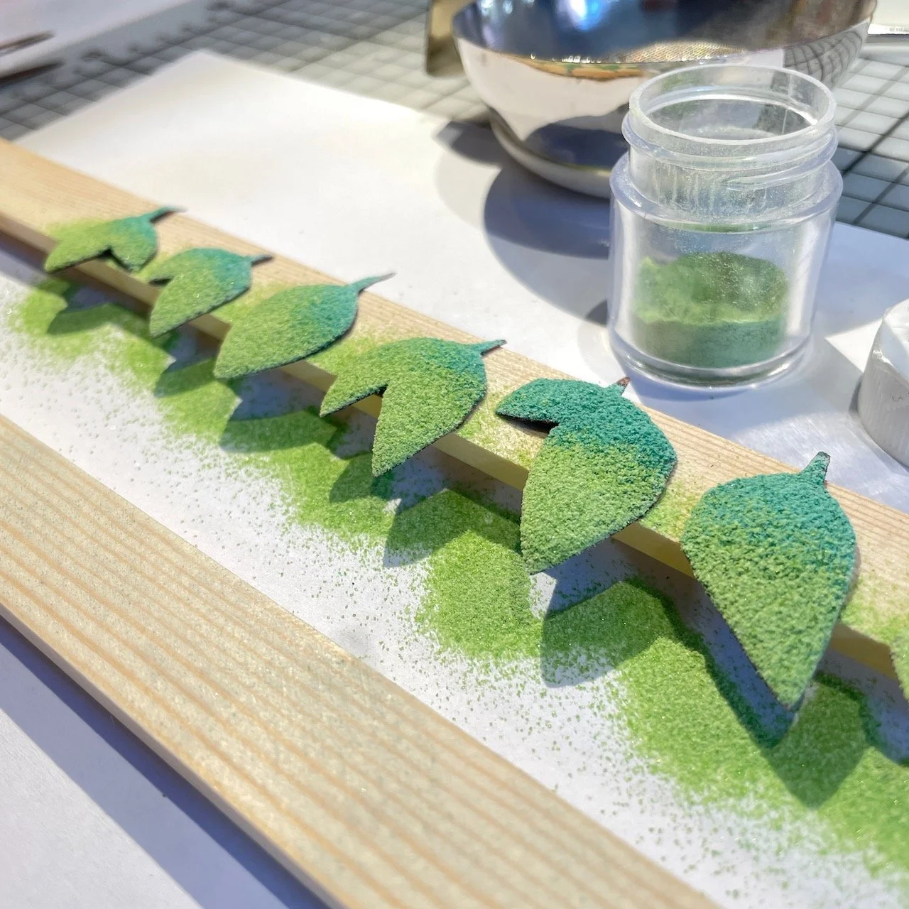 So locker-leicht die Aquarellfarben aufs Papier fließen, so langwierig ist der handwerkliche Herstellungsprozess für jedes Objekt.