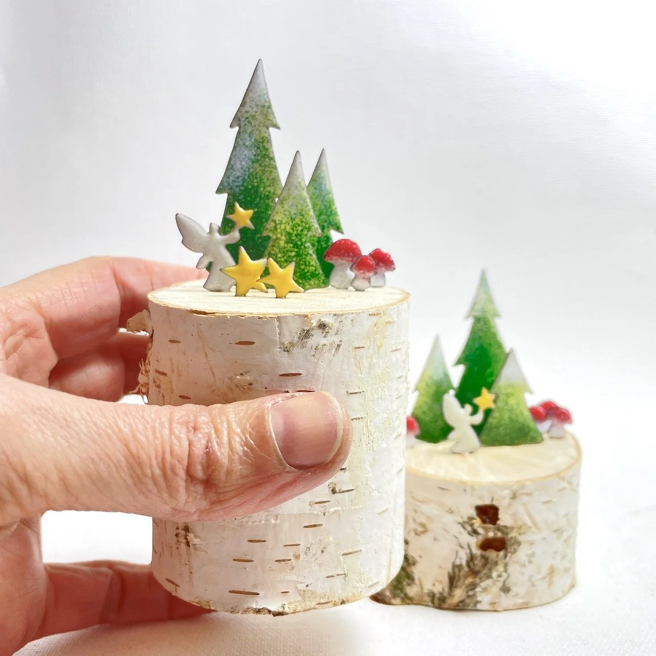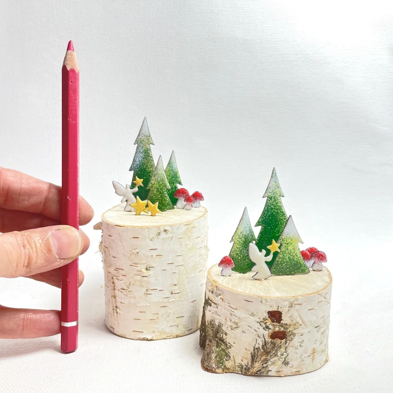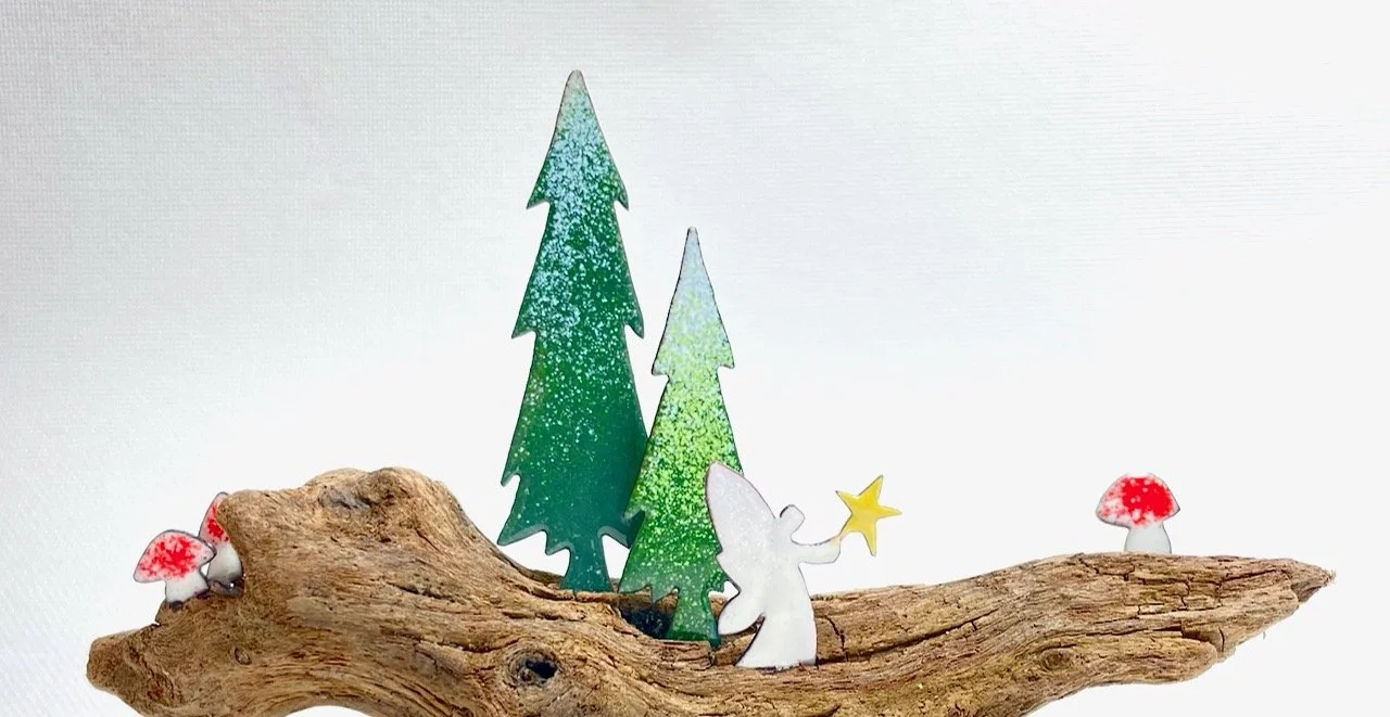 So einen richtig schönen verschneiten Winterwald erleben wir Nordlichter ja leider eher selten, also habe ich selbst einen angefertigt. Verschneite Tannen, hier und da ein kleiner Weihnachtsengel und jede Menge rote Fliegenpilze. Die kleinen Skulpturen und Zweiganhänger können auf Anfrage bestellt werden und sind (solange verfügbar) auch im Onlineshop im Atelier kleine Freiheit erhältlich.